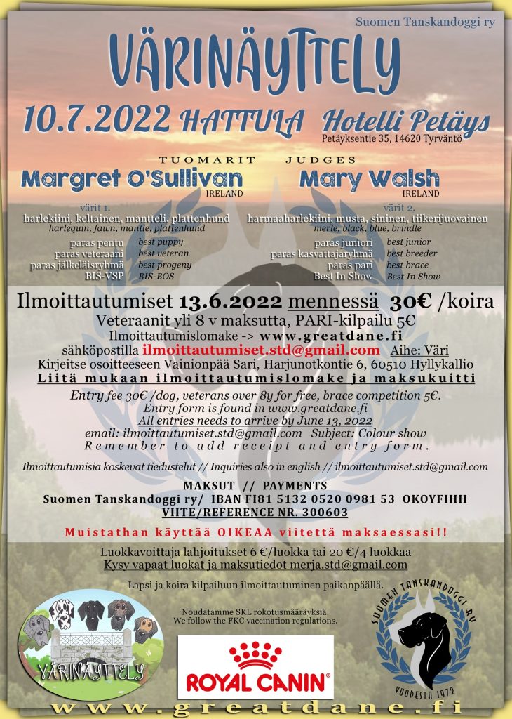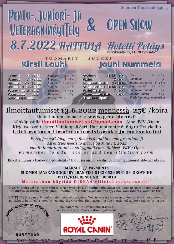 Vuonna 1972 perustetun Suomen Tanskandoggi ry:n kolmipäiväinen 50-vuotisjuhlanäyttelyviikonloppu järjestetään …